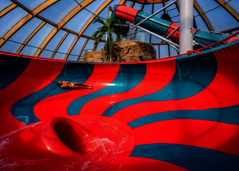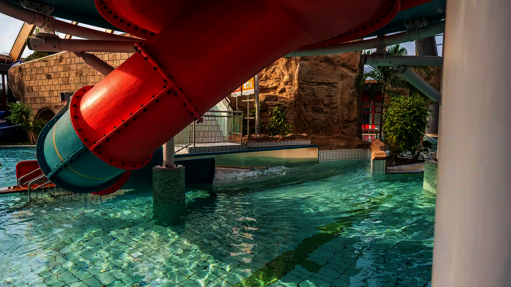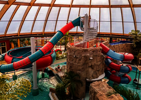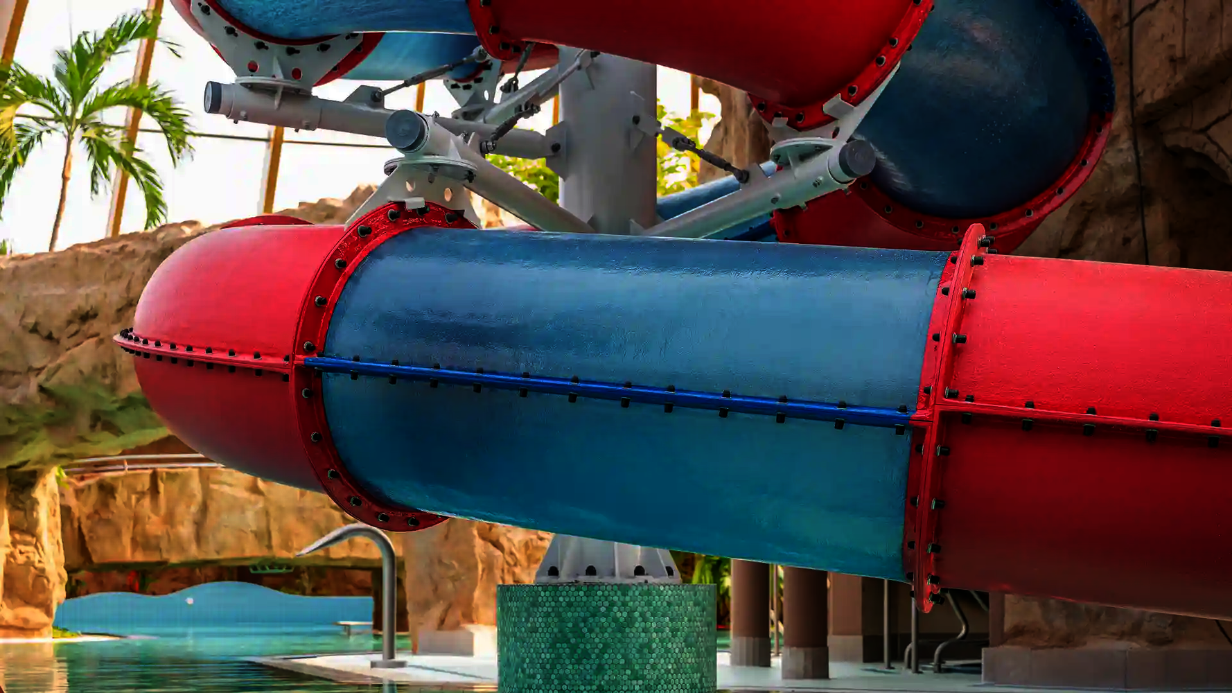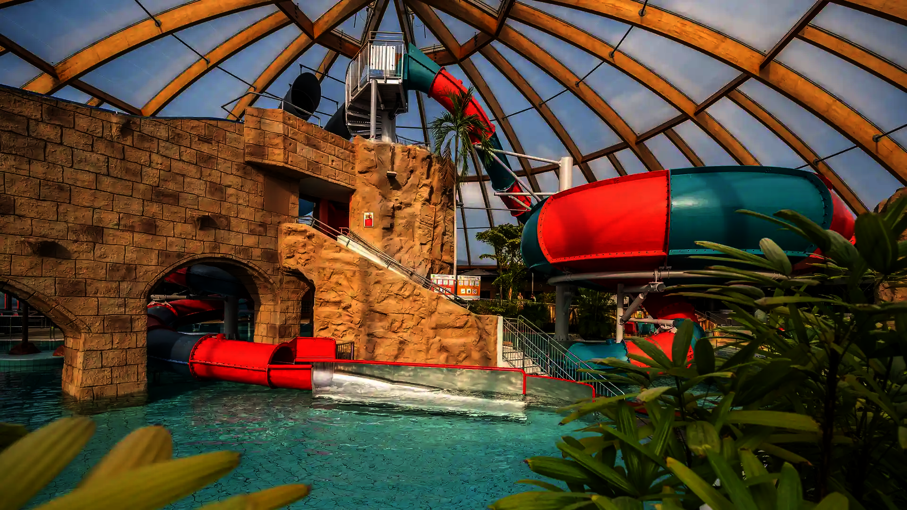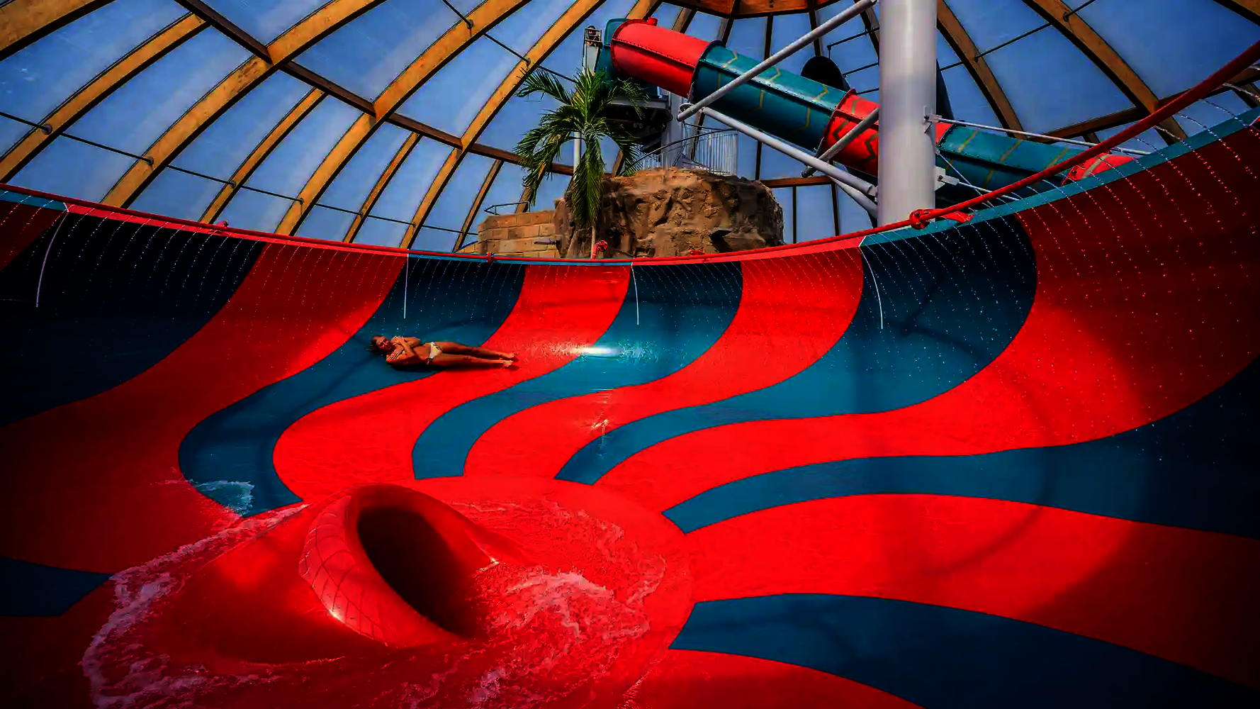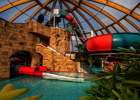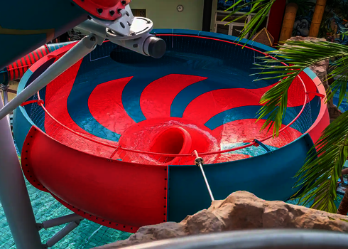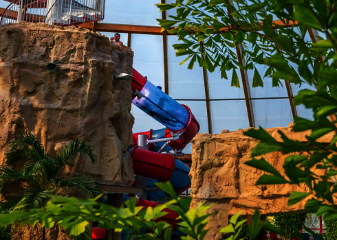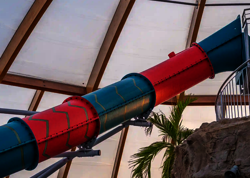 Most of the water slides in the Tropical Islands near Berlin were planned and implemented by us. Thanks to our experience in building indoor water attractions, we were able to create a varied slide experience in a limited space. The slides blend seamlessly into the tropical environment and offer their visitors an unforgettable experience.