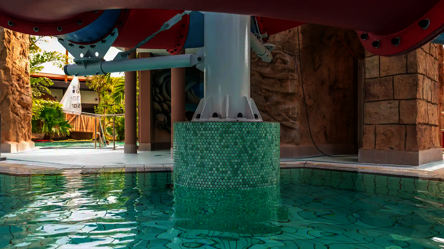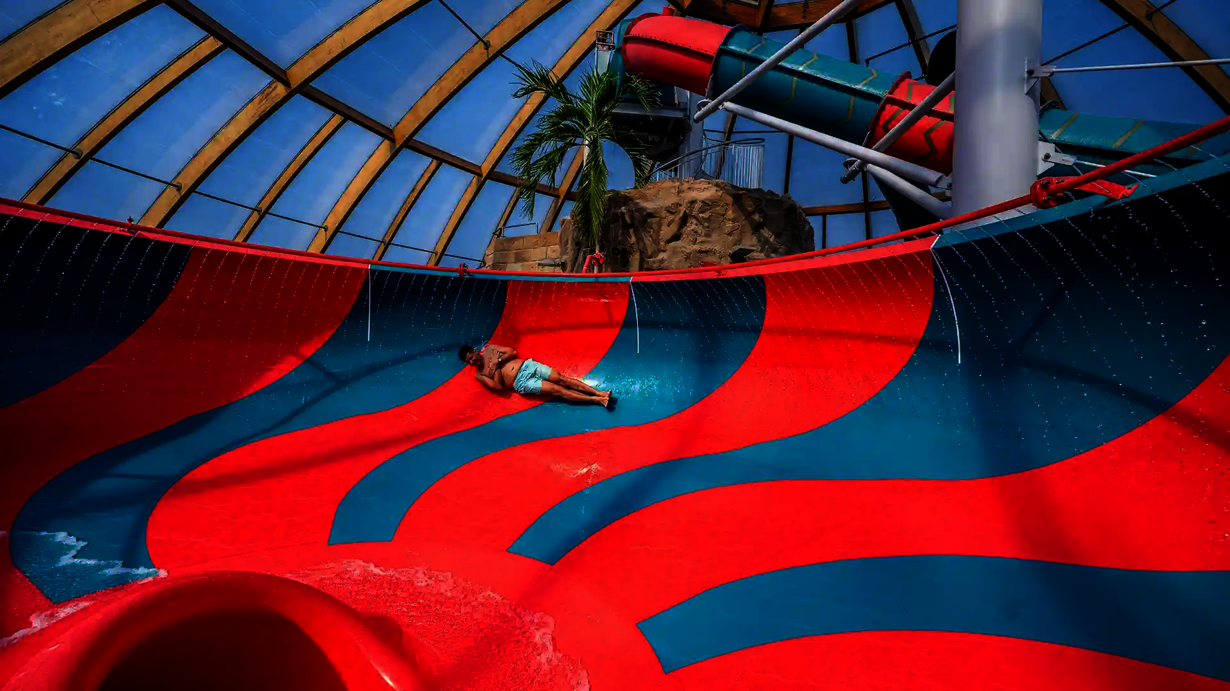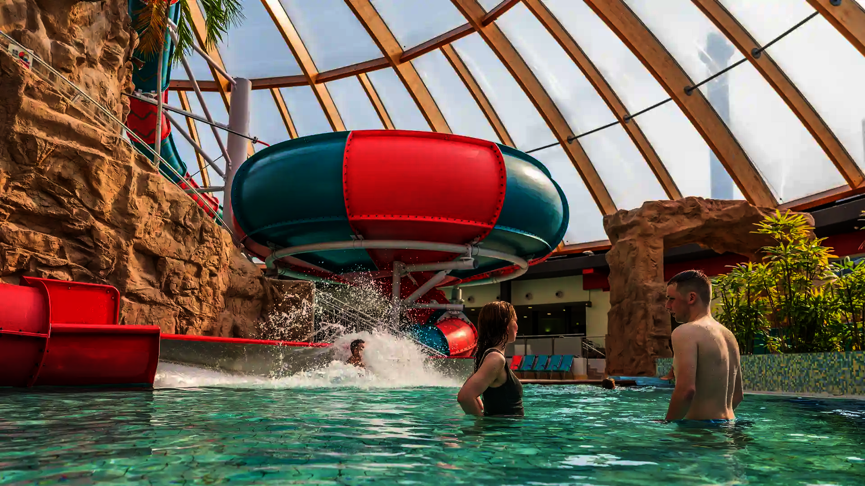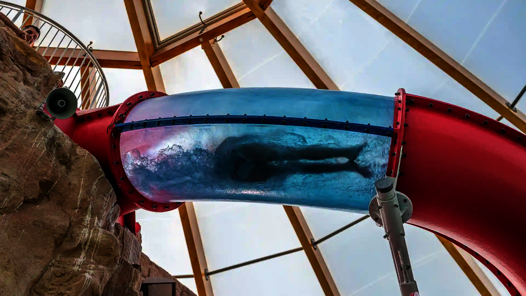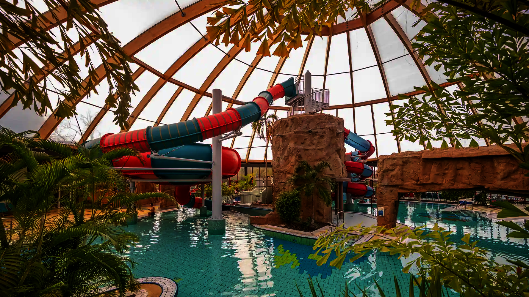 Most of the water slides in the Tropical Islands near Berlin were planned and implemented by us. Thanks to our experience in building indoor water attractions, we were able to create a varied slide experience in a limited space. The slides blend seamlessly into the tropical environment and offer their visitors an unforgettable experience.
