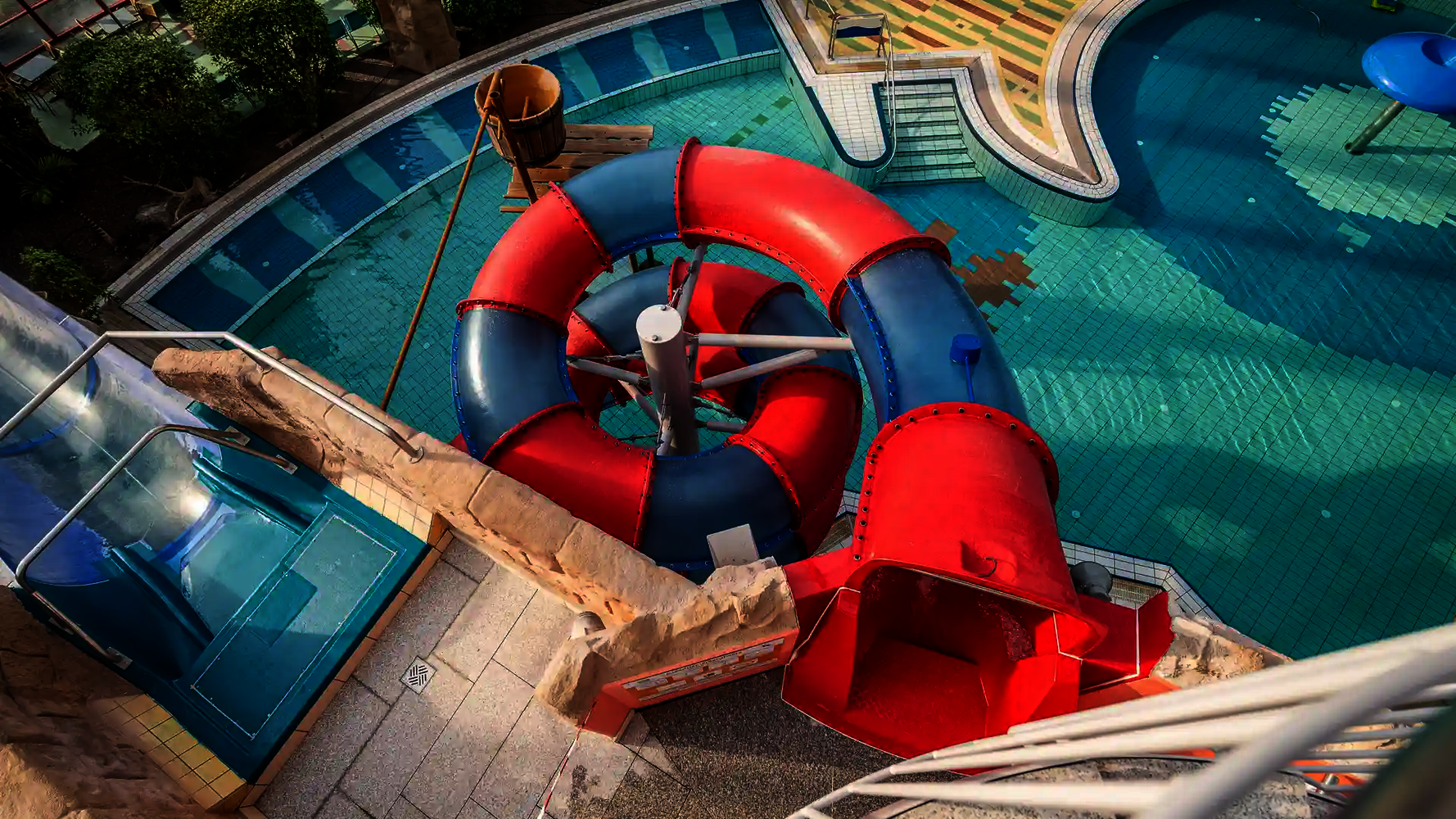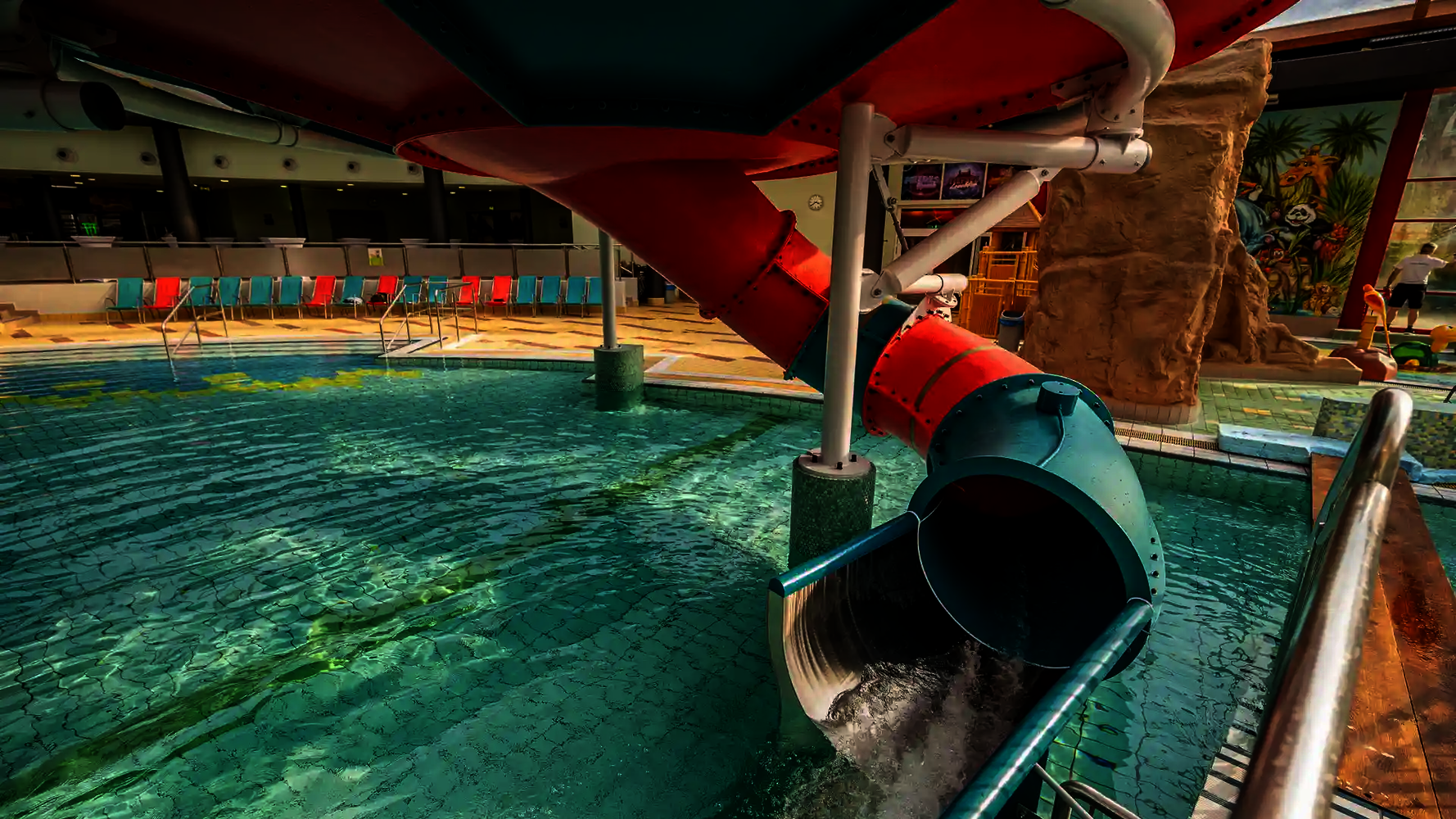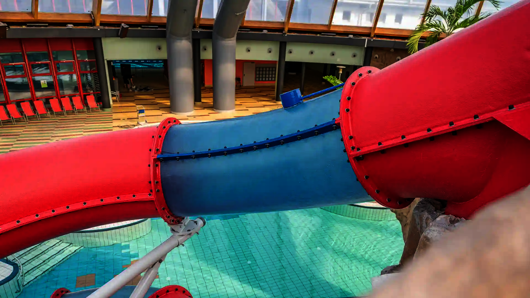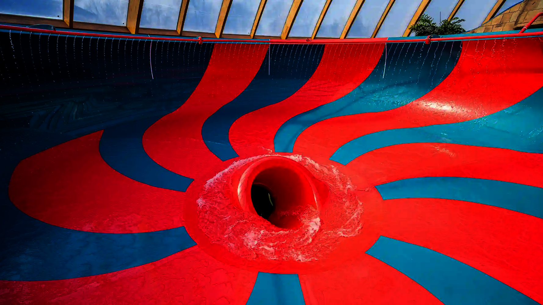 The second attraction is the RR900, which is called the "Coral Swirl" in the pool. The compact, dynamic tube slide with narrow lines ensures continuous acceleration and an intense ride experience in a comparatively small space. Both slides were newly constructed as part of the modernization and integrated directly into the existing indoor swimming pool, thereby expanding the range of slides at Atlantis Dorsten.