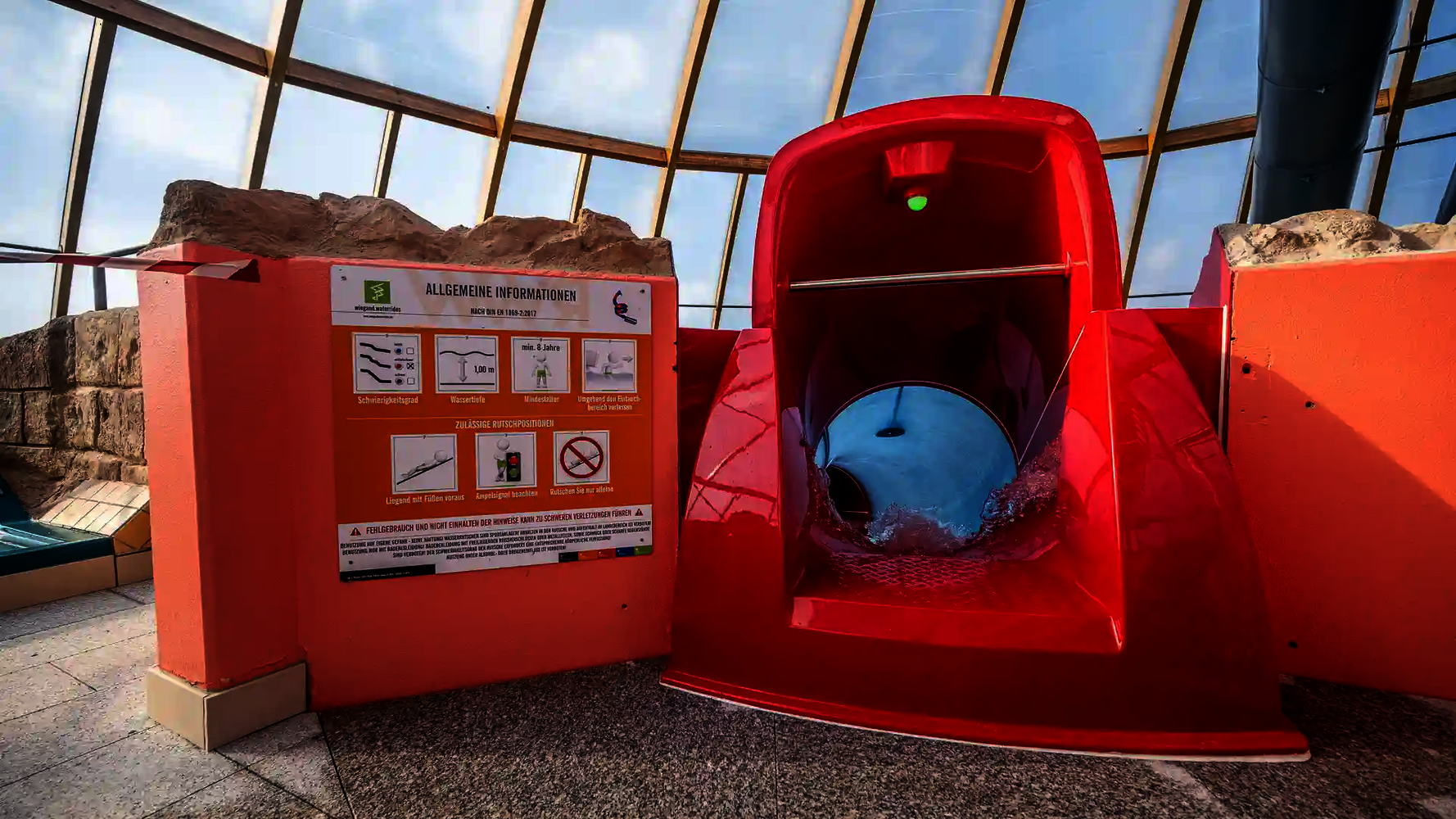 Since 2007, we have been able to supply the largest thermal spa in the world, the thermal bath in Erding, with attractive slides. At 2,850 meters of slides, now you have 28 water slides at your disposal offering three levels of difficulty. These slides include highlights such as for example our 6-speed MatRacer, as well as the Big Wave and our Virtual Reality Water Slide.