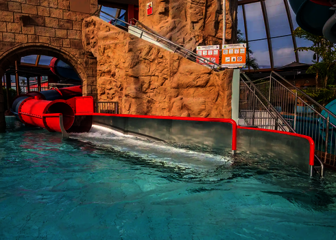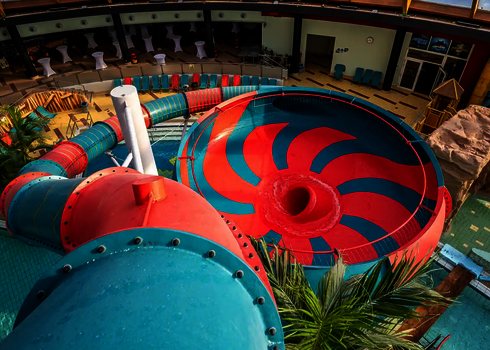 For hotels, we offer tailor-made water slides which blend harmoniously into already existing structures and provide guests with an unforgettable experience. An example of this is the BEECH Resort Fleesensee, where we installed a 63-meter-long FRP slide of the model WR1040. Our many years of experience enable us to implement attractive slide solutions even in a limited space. Particularly popular are tubular slides, family slides and interactive kids slides.