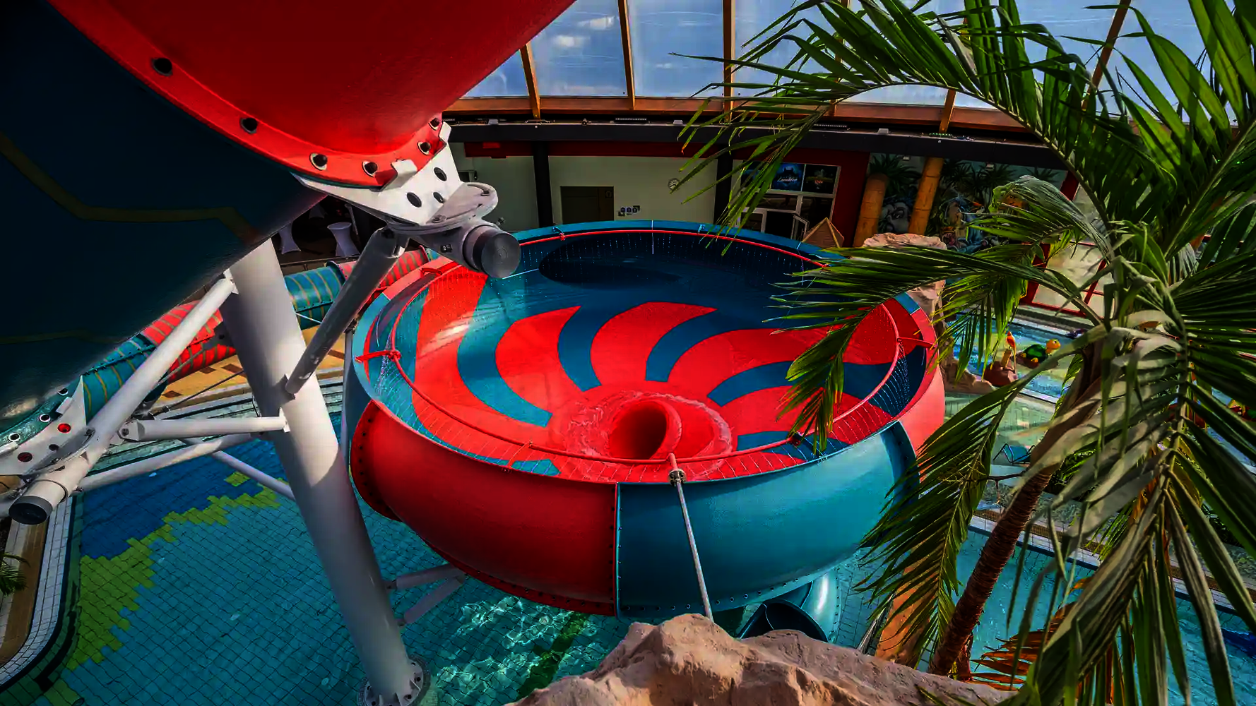 A key part of the renovation was the construction of two new waterslides. A body bowl, which is operated at Atlantis Dorsten under the name "Tropenwirbel", offers an impressive slide experience with a lively start, high speed and several intense turns in the funnel before the ride leads back into the tube.
