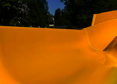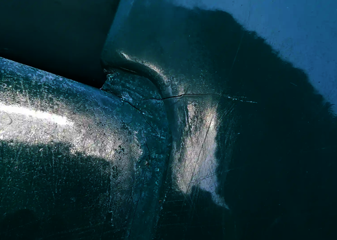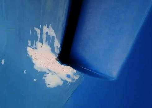 Mechanical damage, for example from swimwear with metal parts or weather conditions such as frost, often leads to cracks in the GRP. In these cases, the material is purposefully sanded down and repaired with new GRP mats in order to restore its stability and slipability.