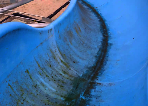 The limescale deposits on GRP slides are often caused by hard water. The affected areas are treated with a special cleansing gel so that the sliding surface becomes flawless again.
