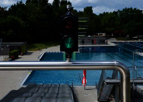 Unlike Time Signal-based control systems, this one is not based on fixed time intervals, but on the actual movement of guests – a clear advantage for heavily frequented slides or unpredictable user behaviour. This sensor-controlled solution enables a smooth flow with reduced waiting times while maintaining the highest level of safety. The system reliably prevents double starts and potential collisions, especially on long, blind slides or facilities with complex routes. The Sensor Signal is therefore the ideal choice for operators who value efficiency and maximum operational safety.
