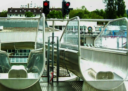 Our stainless steel slides consist of V4A Stainless Steel which is particularly resistant to UV radiation, frost, salt water and chlorinated water. This feature makes these slides ideal for use in outdoor swimming pools, coastal regions and on cruise ships.