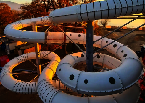 Our longest water slide is located in the Ocean Adventure water park in South Korea. It is a three-lane Matracer made of stainless steel and reaching an impressive length of 103 meters. This slide offers its guests an exciting and memorable experience.