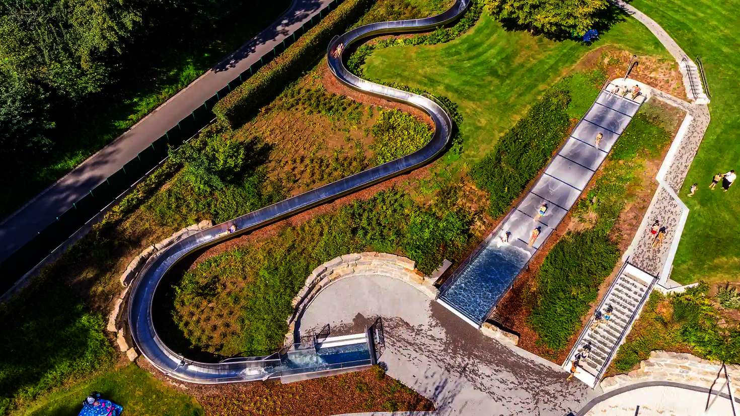 Yes, we manufacture slides in individual colors, shapes and with thematic elements to adapt them to the respective park design. We take into account influencing factors on site and adapt the product to the circumstances.