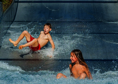 We offer special Kids slides. Children as young as 1 year old can have their first sliding experience accompanied by an adult, provided the water depth is adjusted accordingly. The selection of the suitable slide depends on the child's age, water depth, and adult supervision.