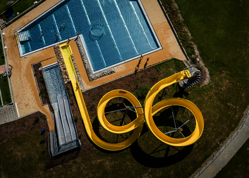 The amount of space required depends on the type of slide and can vary greatly. The water slide can also be adapted to the already existing space.