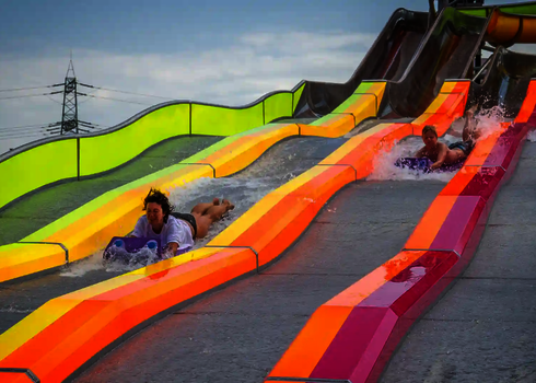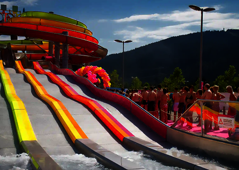 Since 2007, we have been able to supply the largest thermal spa in the world, the thermal bath in Erding, with attractive slides. At 2,850 meters of slides, now you have 28 water slides at your disposal offering three levels of difficulty. These slides include highlights such as for example our 6-speed MatRacer, as well as the Big Wave and our Virtual Reality Water Slide.