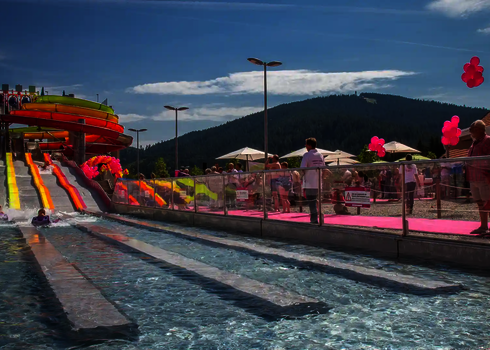 The Galaxy Black Forest in Titisee-Neustadt sets standards in the field of modern water parks. Outdoors, a Matracer, Family Twister, Boomerang, a RR1400 and a WR1040 provide a varied slide experience.