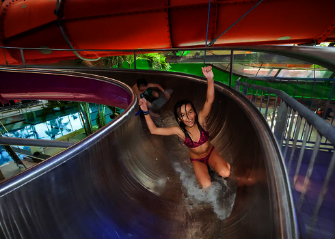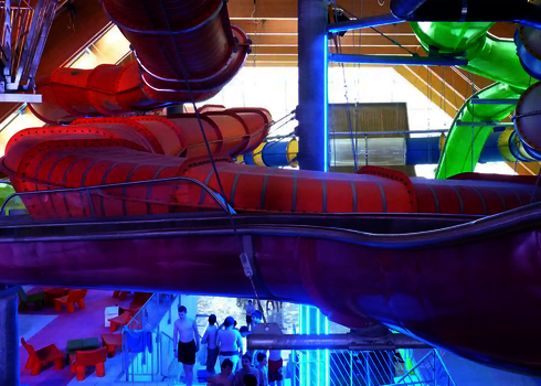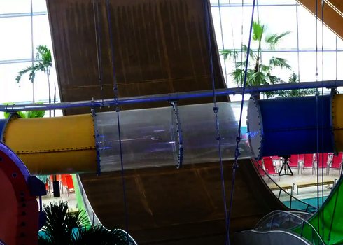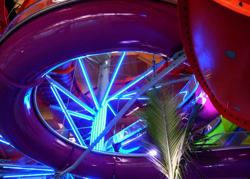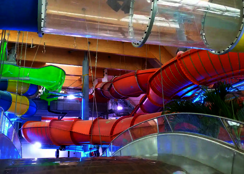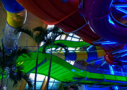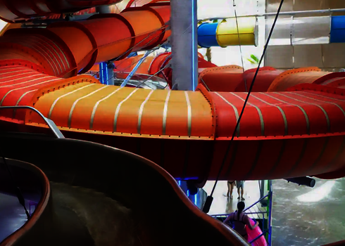 Most of the water slides in the Tropical Islands near Berlin were planned and implemented by us. Thanks to our experience in building indoor water attractions, we were able to create a varied slide experience in a limited space. The slides blend seamlessly into the tropical environment and offer their visitors an unforgettable experience.