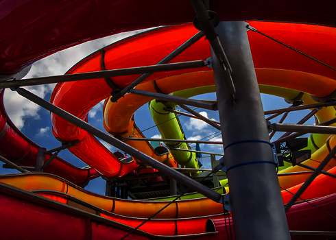 Large, spectacular slides with a high experience value are used in water parks. These slides include tire slides with blackhole effects, multi-person slides, high-speed slides, and interactive water slides with light and sound effects. Our facilities are individually planned and tailored to the conditions of the park. So they can provide a unique slide experience for guests of all ages.