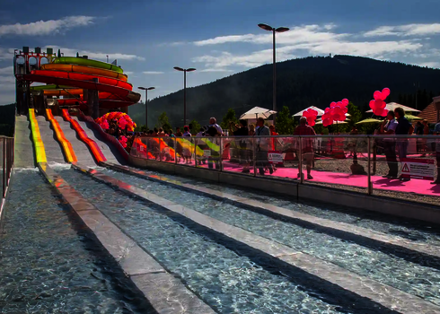 Our high-speed slides are designed to reach extreme speed levels. Among others, these slides include the following: Freefall slides, steep body slides and the Slide Coaster, which combines elements of water slides and roller coaster.