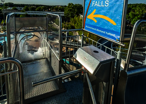 For the use on cruise ships, we develop tailor-made water slides meeting the special requirements on board. An example of this type of cruise ships is the AIDA PRIMA, which is equipped with a 96-meter-long Body Racer made of stainless steel and acrylic glass tubes, as well as a 54-meter-long Lazy River. Two tire slides with lengths of 79 metres and 80 metres as well as a 77 metre long family slide were installed on the cruise ship AIDA NOVA. Our slides are designed to meet the limited space and safety standards on cruise ships while providing an exciting slide experience for guests.