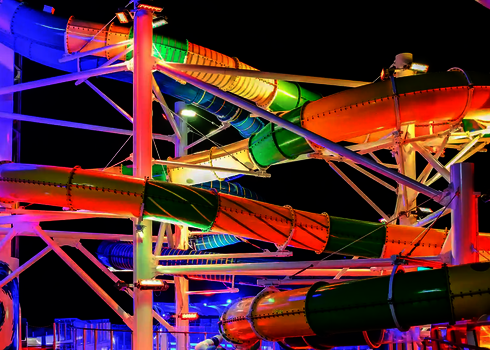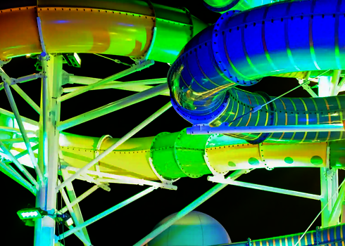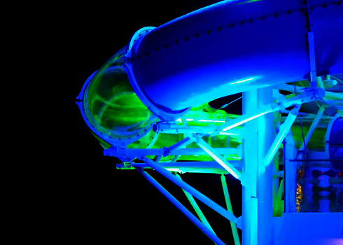 Dans les parcs aquatiques, on utilise de grands toboggans spectaculaires à forte valeur ajoutée. Il s'agit notamment de toboggans à bouées avec des effets de trou noir, de toboggans pour plusieurs personnes, de toboggans à grande vitesse et de toboggans aquatiques interactifs avec des effets de lumière et de son. Nos installations sont planifiées individuellement et adaptées aux conditions du parc afin d'offrir une expérience de toboggan unique aux clients de tous âges.