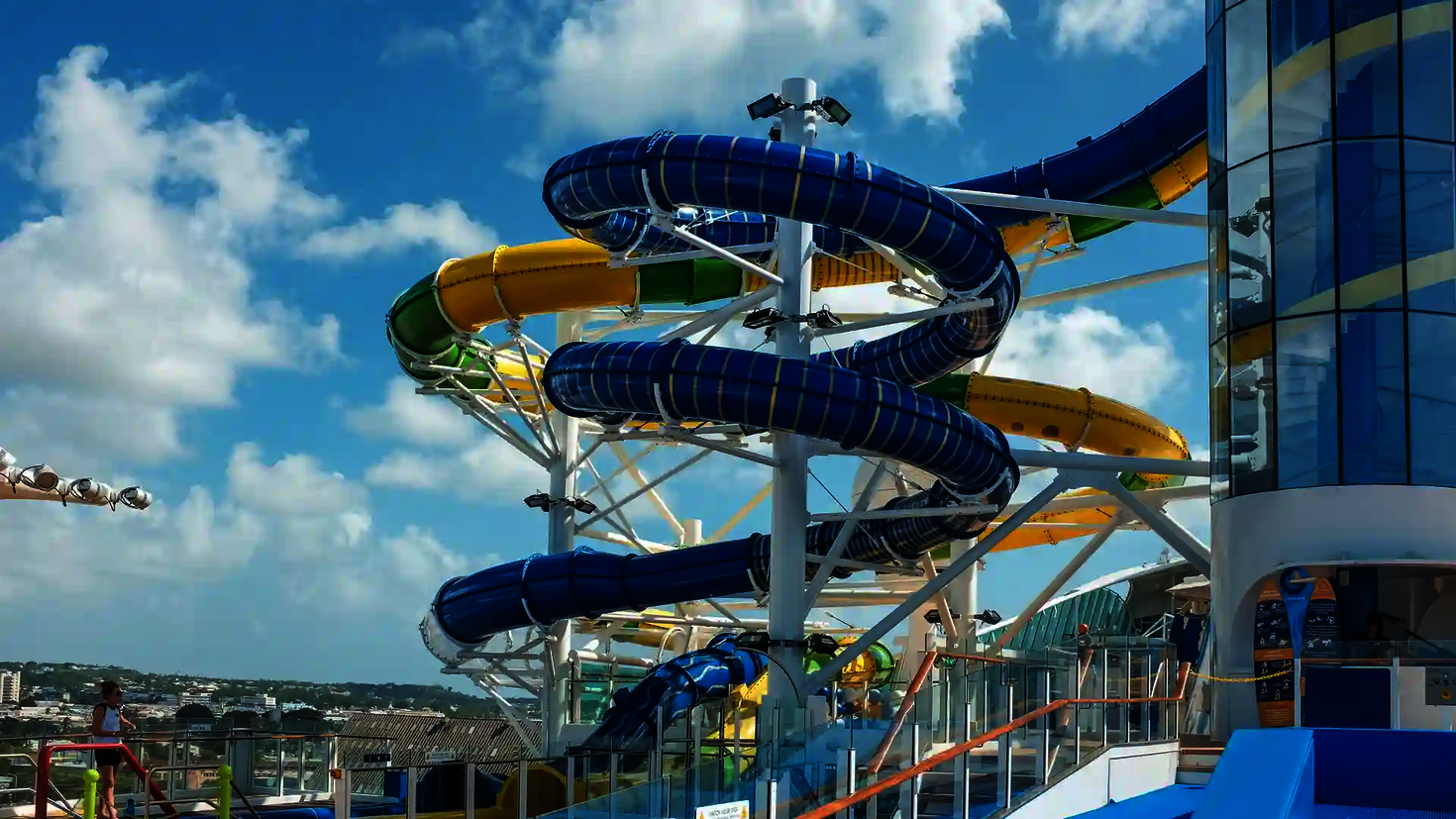 Nos toboggans aquatiques sont utilisés sur plus de 20 navires de croisière, dont l'Icon of the Seas, actuellement le plus grand navire de croisière du monde. Ce navire dispose de six toboggans que nous avons conçus et qui offrent aux passagers une expérience de glisse unique en haute mer. Les toboggans ont été spécialement conçus pour être utilisés sur des navires de croisière et sont adaptés aux conditions particulières de la mer.