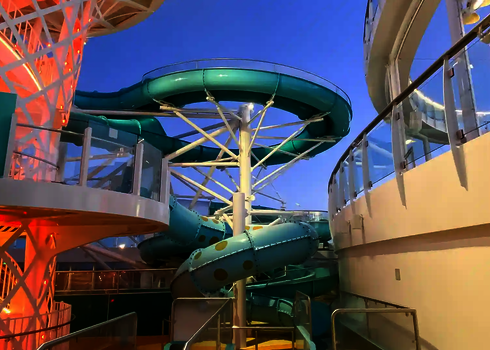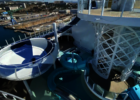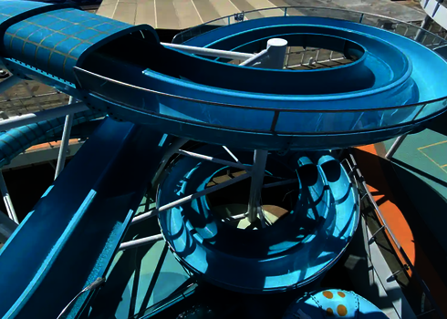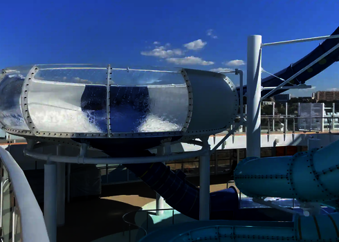 Nos toboggans aquatiques sont utilisés sur plus de 20 navires de croisière, dont l'Icon of the Seas, actuellement le plus grand navire de croisière du monde. Ce navire dispose de six toboggans que nous avons conçus et qui offrent aux passagers une expérience de glisse unique en haute mer. Les toboggans ont été spécialement conçus pour être utilisés sur des navires de croisière et sont adaptés aux conditions particulières de la mer.