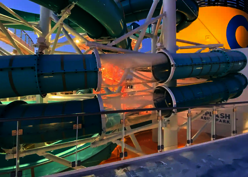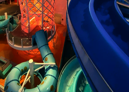 Dans les parcs aquatiques, on utilise de grands toboggans spectaculaires à forte valeur ajoutée. Il s'agit notamment de toboggans à bouées avec des effets de trou noir, de toboggans pour plusieurs personnes, de toboggans à grande vitesse et de toboggans aquatiques interactifs avec des effets de lumière et de son. Nos installations sont planifiées individuellement et adaptées aux conditions du parc afin d'offrir une expérience de toboggan unique aux clients de tous âges.