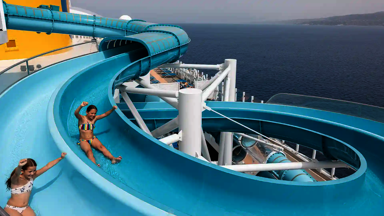 À bord du Costa Toscana, un 2-in-1 Racer et un Body Bowl permettent de varier les plaisirs aquatiques en haute mer. Des éléments acryliques et des structures en acier robustes assurent la durabilité et un design ouvert. Les toboggans sont un élément central du pont d'aventure et offrent un divertissement pour tous les âges pendant la croisière.