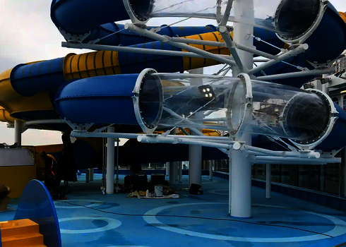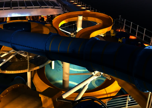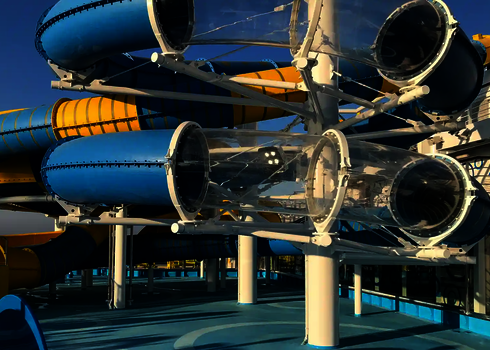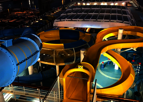 Nos toboggans aquatiques sont utilisés sur plus de 20 navires de croisière, dont l'Icon of the Seas, actuellement le plus grand navire de croisière du monde. Ce navire dispose de six toboggans que nous avons conçus et qui offrent aux passagers une expérience de glisse unique en haute mer. Les toboggans ont été spécialement conçus pour être utilisés sur des navires de croisière et sont adaptés aux conditions particulières de la mer.