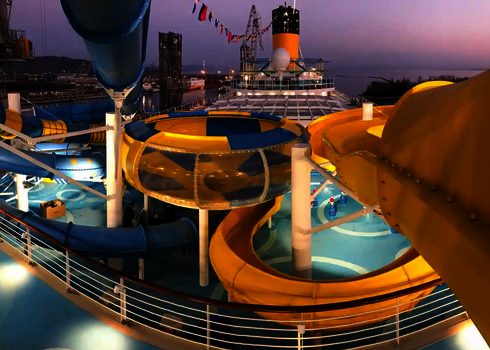 Le Costa Venezia séduit avec un WR1040, un RR900, un Body Bowl et un toboggans pour tout-petits à l'extérieur. Des éléments acryliques transparents ouvrent des vues particulières pendant le trajet. Les toboggans polyvalents font du navire une destination appréciée des familles et garantissent des loisirs directement à bord.