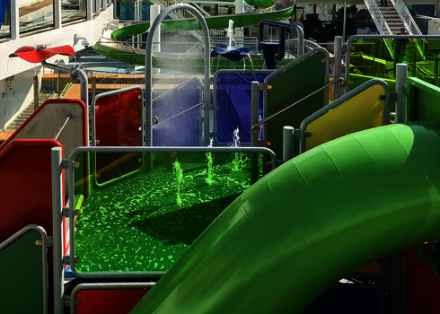 Nos toboggans aquatiques sont utilisés sur plus de 20 navires de croisière, dont l'Icon of the Seas, actuellement le plus grand navire de croisière du monde. Ce navire dispose de six toboggans que nous avons conçus et qui offrent aux passagers une expérience de glisse unique en haute mer. Les toboggans ont été spécialement conçus pour être utilisés sur des navires de croisière et sont adaptés aux conditions particulières de la mer.