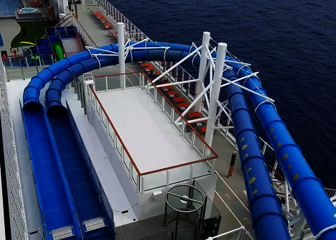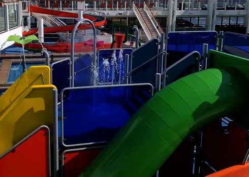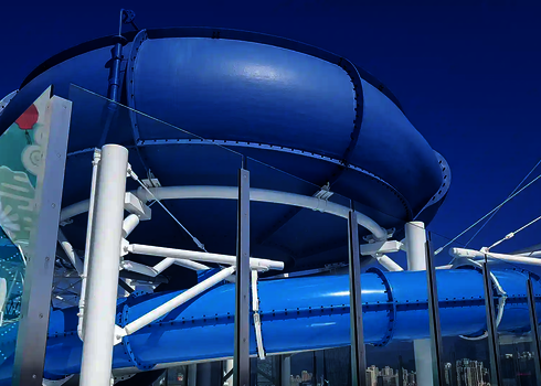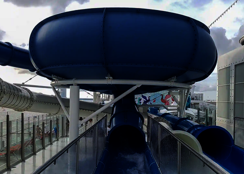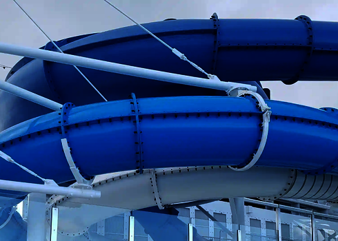Nos toboggans aquatiques sont utilisés sur plus de 20 navires de croisière, dont l'Icon of the Seas, actuellement le plus grand navire de croisière du monde. Ce navire dispose de six toboggans que nous avons conçus et qui offrent aux passagers une expérience de glisse unique en haute mer. Les toboggans ont été spécialement conçus pour être utilisés sur des navires de croisière et sont adaptés aux conditions particulières de la mer.