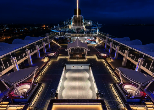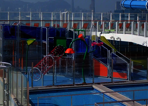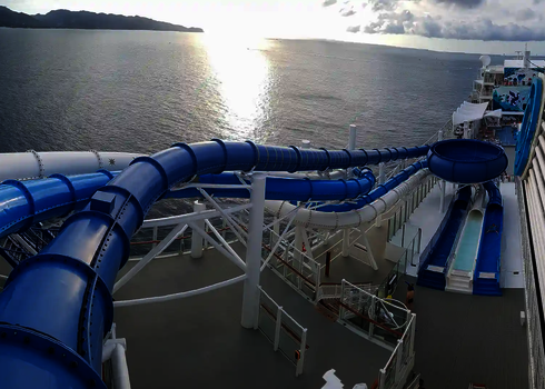 Le World Dream de Resorts World Cruises offre à ses clients un paysage de toboggans variés à l'extérieur. À bord, un Body Racer, une structure de jeux aquatiques, un Body Bowl et un RR900 garantissent des plaisirs aquatiques variés en haute mer.