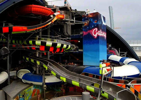Pour l'utilisation sur les navires de croisière, nous développons des toboggans aquatiques sur mesure qui répondent aux exigences particulières à bord. C'est le cas par exemple de l'AIDA PRIMA, qui est équipé d'un Body Racer de 96 mètres en acier inoxydable et de tubes en verre acrylique, ainsi que d'un Lazy River de 54 mètres. Sur l'AIDA NOVA, deux toboggans à bouées de 79 mètres et 80 mètres de long ont été installés, ainsi qu'un Family Slide de 77 mètres. Nos toboggans sont conçus pour s'adapter à l'espace limité et aux normes de sécurité des navires de croisière, tout en offrant aux passagers une expérience de glisse passionnante.