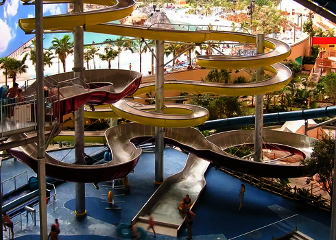 Dans les parcs aquatiques, on utilise de grands toboggans spectaculaires à forte valeur ajoutée. Il s'agit notamment de toboggans à bouées avec des effets de trou noir, de toboggans pour plusieurs personnes, de toboggans à grande vitesse et de toboggans aquatiques interactifs avec des effets de lumière et de son. Nos installations sont planifiées individuellement et adaptées aux conditions du parc afin d'offrir une expérience de toboggan unique aux clients de tous âges.
