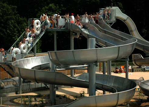 Dans les parcs aquatiques, on utilise de grands toboggans spectaculaires à forte valeur ajoutée. Il s'agit notamment de toboggans à bouées avec des effets de trou noir, de toboggans pour plusieurs personnes, de toboggans à grande vitesse et de toboggans aquatiques interactifs avec des effets de lumière et de son. Nos installations sont planifiées individuellement et adaptées aux conditions du parc afin d'offrir une expérience de toboggan unique aux clients de tous âges.