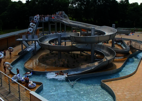 Notre premier et plus ancien toboggan aquatique en acier inoxydable se trouve à Maisach, près de Munich. Il a été achevé en 1981 et fait toujours le bonheur des jeunes et des moins jeunes pendant la saison des piscines en plein air en Bavière.