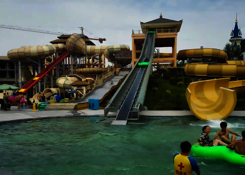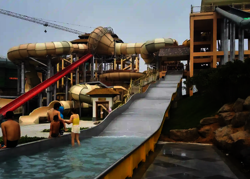 Notre toboggan aquatique le plus long se trouve dans le parc aquatique Ocean Adventure en Corée du Sud. Il s'agit d'un Matracer à trois voies en acier inoxydable d'une longueur impressionnante de 103 mètres. Ce toboggan offre aux visiteurs une expérience passionnante et inoubliable.
