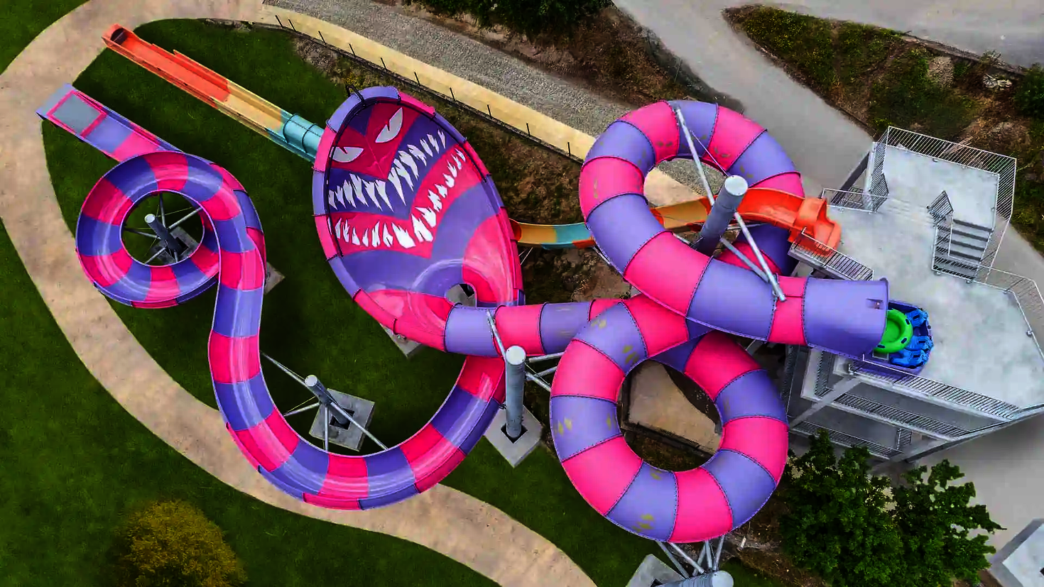 Les lignes bien pensées du toboggan font de cette installation un point fort particulier pour les amateurs d'adrénaline et les familles.