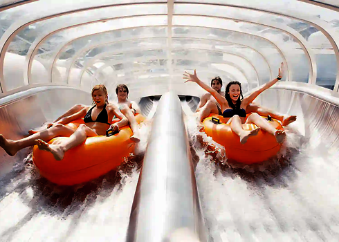 Pour l'utilisation sur les navires de croisière, nous développons des toboggans aquatiques sur mesure qui répondent aux exigences particulières à bord. C'est le cas par exemple de l'AIDA PRIMA, qui est équipé d'un Body Racer de 96 mètres en acier inoxydable et de tubes en verre acrylique, ainsi que d'un Lazy River de 54 mètres. Sur l'AIDA NOVA, deux toboggans à bouées de 79 mètres et 80 mètres de long ont été installés, ainsi qu'un Family Slide de 77 mètres. Nos toboggans sont conçus pour s'adapter à l'espace limité et aux normes de sécurité des navires de croisière, tout en offrant aux passagers une expérience de glisse passionnante.