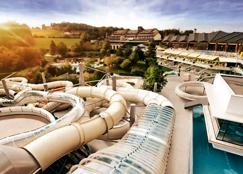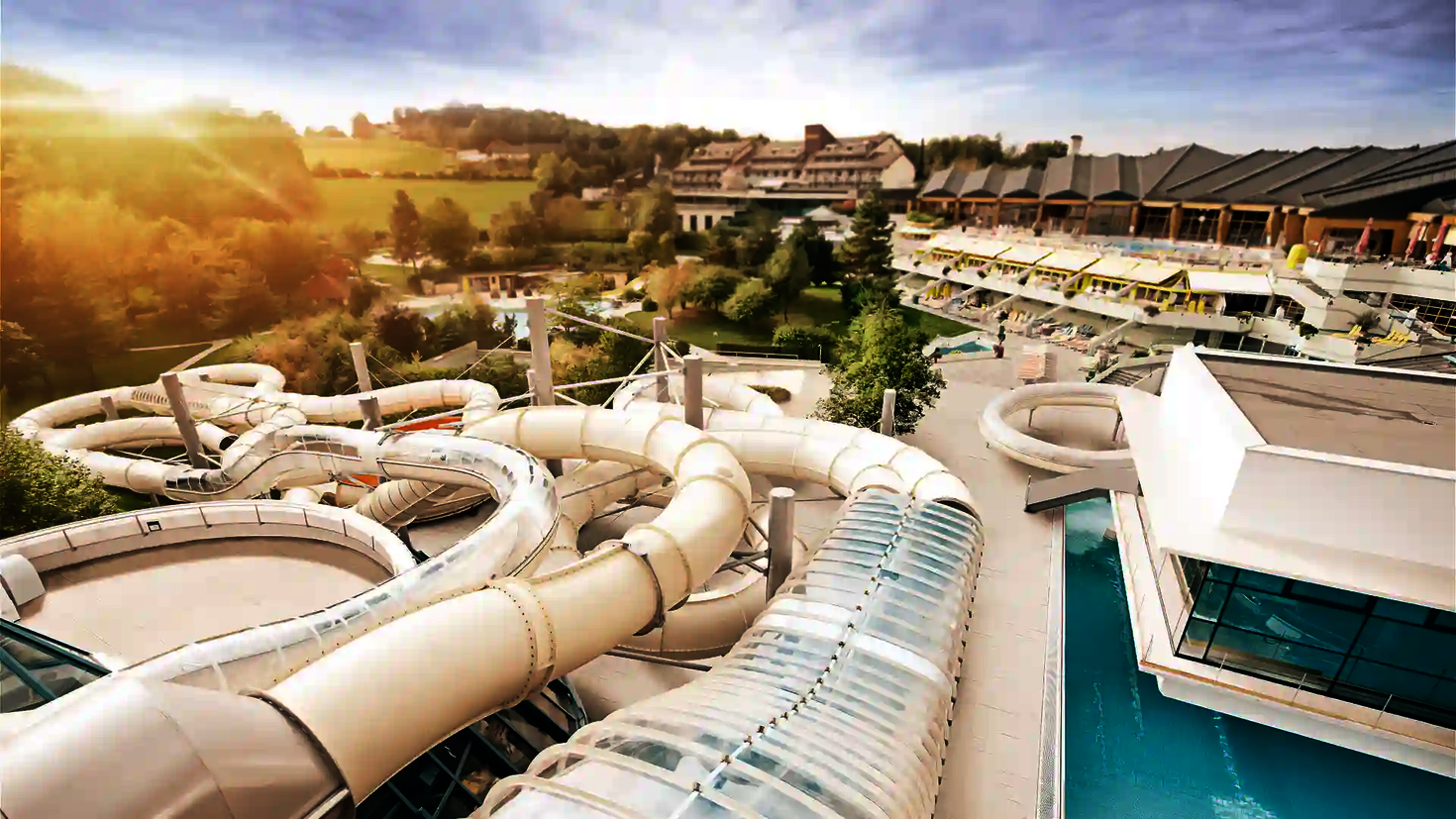 Les thermes Loipersdorf en Autriche enthousiasment par leur vaste univers de toboggans. Le Speed Blaster, en particulier, assure des descentes fulgurantes dans la zone extérieure. L'offre est complétée par des bouées de glisse qui garantissent une expérience de glisse confortable.