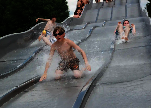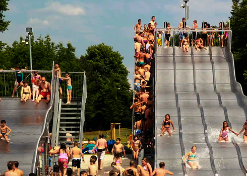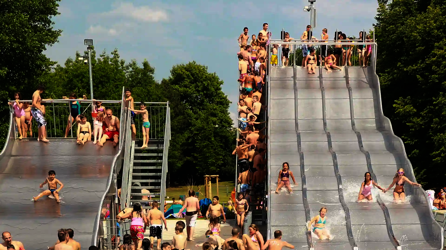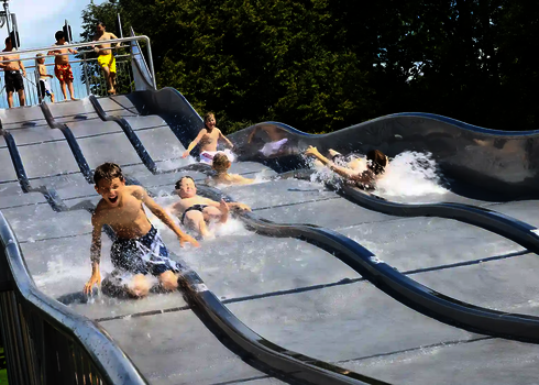 L'espace nécessaire dépend du type de toboggan et peut varier considérablement. Dans ce contexte, le toboggan aquatique peut également être adapté à l'espace disponible.