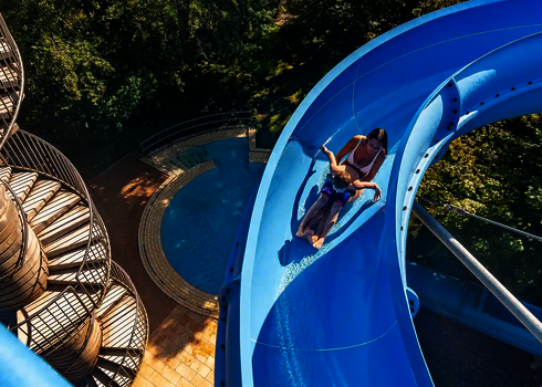 Pour les thermes, nous proposons une large gamme de toboggans aquatiques qui permettent à la fois la détente et l'aventure. C'est le cas par exemple des thermes de Loipersdorf, qui disposent de cinq toboggans impressionnants. Dans les thermes d'Erding, le plus grand paradis du toboggan d'Allemagne, de nombreux toboggans spectaculaires proviennent également de notre production. Nos toboggans peuvent être personnalisés et intégrés harmonieusement dans l'architecture des thermes afin d'offrir aux clients une expérience inoubliable.