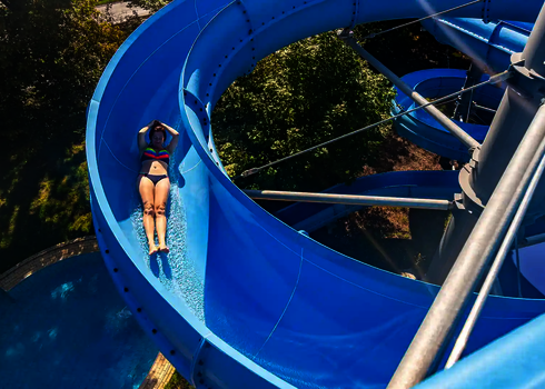 Dans les parcs aquatiques, on utilise de grands toboggans spectaculaires à forte valeur ajoutée. Il s'agit notamment de toboggans à bouées avec des effets de trou noir, de toboggans pour plusieurs personnes, de toboggans à grande vitesse et de toboggans aquatiques interactifs avec des effets de lumière et de son. Nos installations sont planifiées individuellement et adaptées aux conditions du parc afin d'offrir une expérience de toboggan unique aux clients de tous âges.