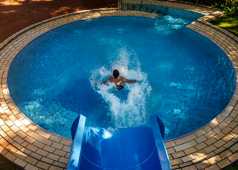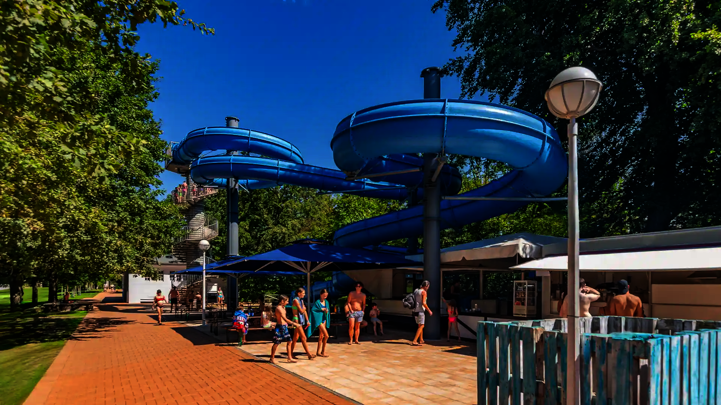 L'espace nécessaire dépend du type de toboggan et peut varier considérablement. Dans ce contexte, le toboggan aquatique peut également être adapté à l'espace disponible.