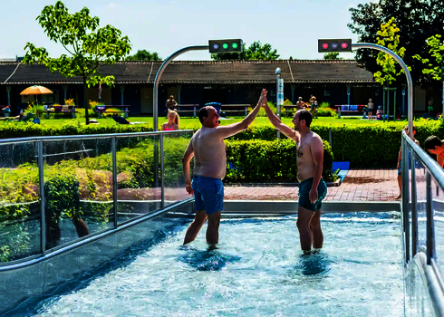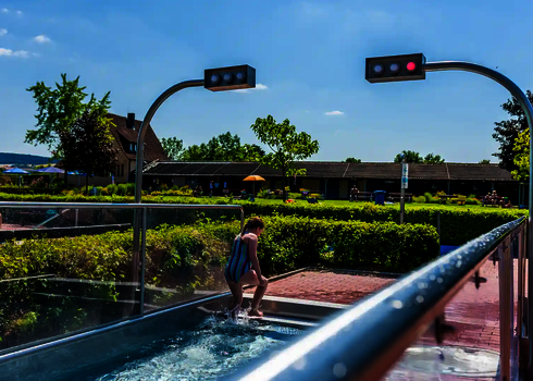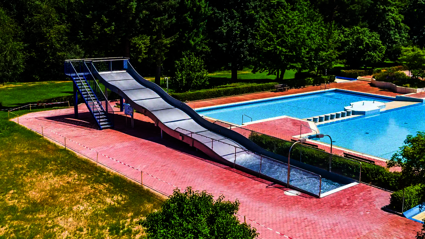 Depuis 1954, la piscine en plein air de Zellingen en Bavière offre un rafraîchissement estival dans un cadre idyllique, directement au bord du Main. Le toboggan interactif à vagues larges, premier du genre à avoir été installé en 2022, constitue un véritable point fort : Des points de contact le long du toboggan créent un suspense ludique et font de chaque glissade une expérience à fort coefficient de répétition.De nombreuses manifestations telles que les journées familiales, les baignades nocturnes ou le très apprécié petit déjeuner aux saucisses blanches complètent l'offre et font de la piscine en plein air de Zellingen un point de rencontre pour toute la région.