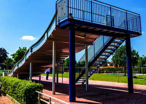 Les petits toboggans n'ont besoin que de quelques mètres, tandis que les grands toboggans tubulaires ou les pentagliss à plusieurs voies requièrent plus d'espace. Nous proposons des solutions de planification individuelles pour différentes conditions d'espace.