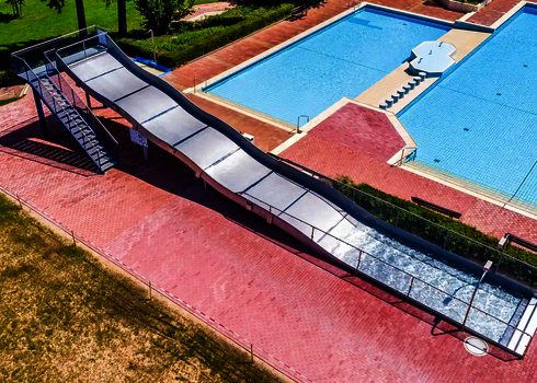 L'espace nécessaire dépend du type de toboggan et peut varier considérablement. Dans ce contexte, le toboggan aquatique peut également être adapté à l'espace disponible.