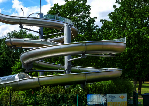 Dans les parcs aquatiques, on utilise de grands toboggans spectaculaires à forte valeur ajoutée. Il s'agit notamment de toboggans à bouées avec des effets de trou noir, de toboggans pour plusieurs personnes, de toboggans à grande vitesse et de toboggans aquatiques interactifs avec des effets de lumière et de son. Nos installations sont planifiées individuellement et adaptées aux conditions du parc afin d'offrir une expérience de toboggan unique aux clients de tous âges.