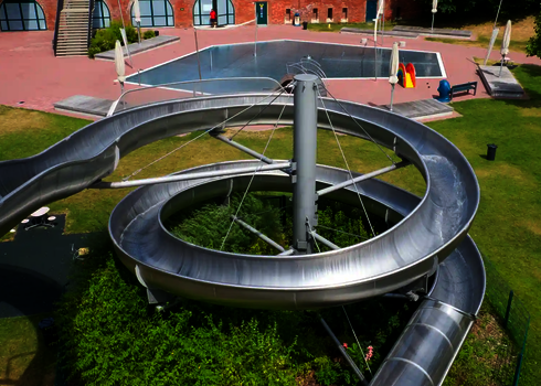 Notre premier et plus ancien toboggan aquatique en acier inoxydable se trouve à Maisach, près de Munich. Il a été achevé en 1981 et fait toujours le bonheur des jeunes et des moins jeunes pendant la saison des piscines en plein air en Bavière.