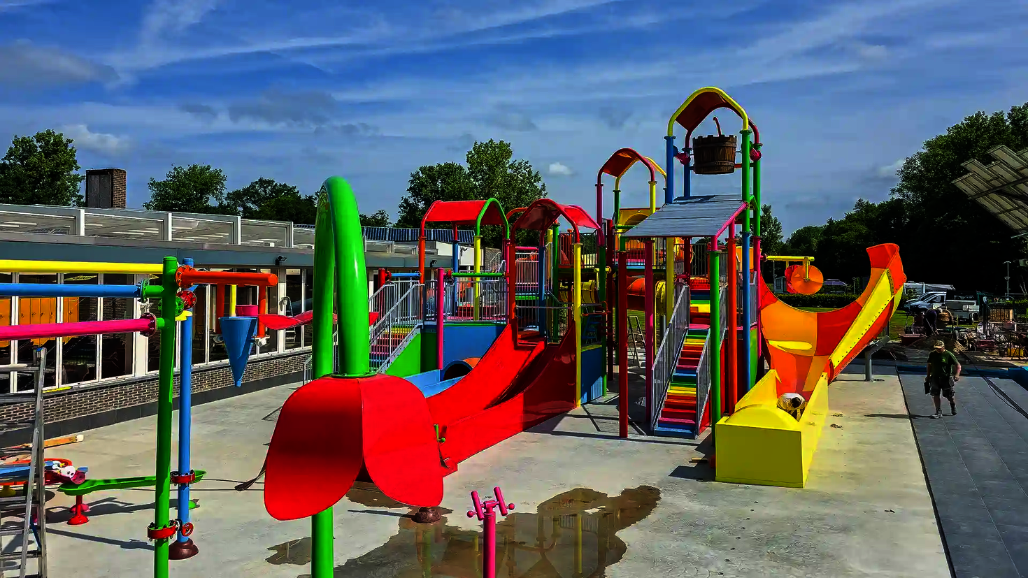 Le camping belge propose à ses clients une expérience aquatique variée avec une multitude de jeux aquatiques pour petits et grands. La pièce maîtresse de l'espace aquatique est une structure de jeux aquatiques moderne qui propose plusieurs aventures de glisse : Un Multislide haut en couleur, le modèle RR900 - Kids adapté aux enfants ainsi qu'un grand toboggan à vagues larges garantissent des plaisirs de glisse variés. L'offre est complétée par de nombreux éléments interactifs Wie-Spray, qui permettent de se rafraîchir de manière ludique et augmentent encore le facteur de plaisir. L'ensemble du concept est axé sur les besoins des familles et des enfants - pour des journées de vacances inoubliables remplies de plaisirs aquatiques.