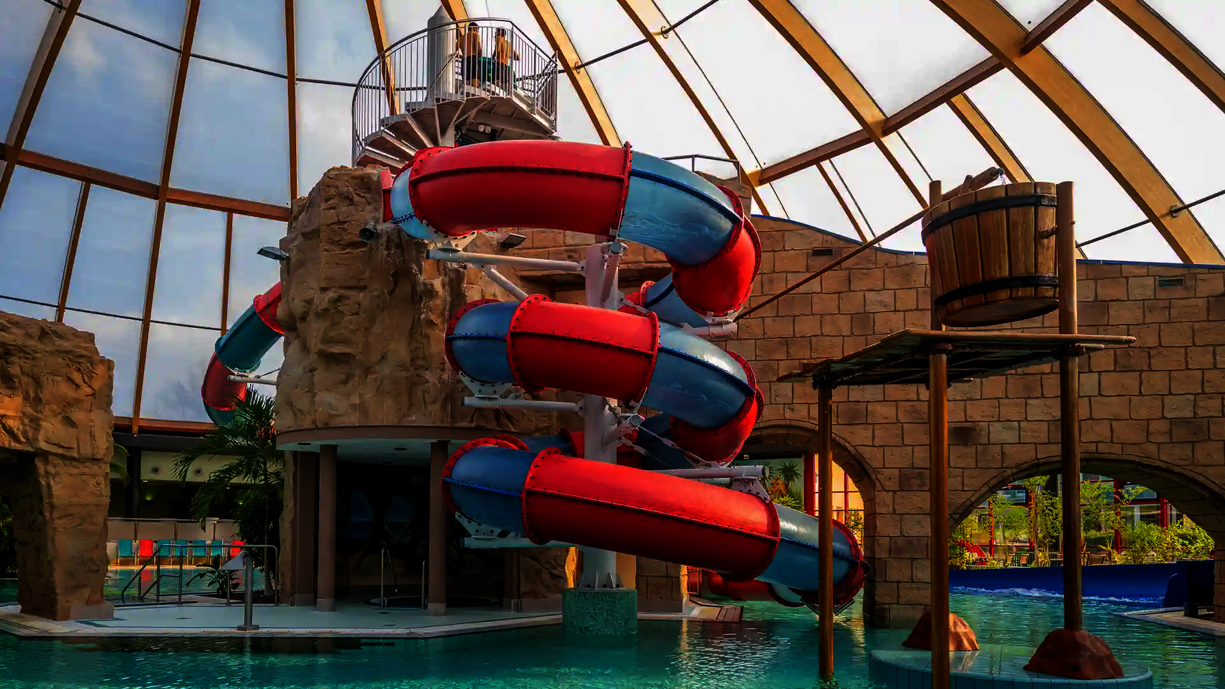 Für Thermen bieten wir eine breite Palette an Wasserrutschen, die sowohl Entspannung als auch Abenteuer ermöglichen. Ein Beispiel ist die Therme Loipersdorf, die über fünf beeindruckende Rutschen verfügt. Auch in der Therme Erding, Deutschlands größtem Rutschenparadies, stammen viele der spektakulären Rutschen aus unserer Produktion. Unsere Rutschen lassen sich individuell anpassen und harmonisch in die Architektur der Therme integrieren, um Gästen ein unvergessliches Erlebnis zu bieten.