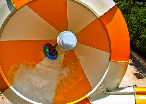 Die Wasserrutsche Crazy Cone überzeugt durch ihre besondere Geometrie, die eine unerwartete Öffnung im Rutschenverlauf bietet. Nach einer schnellen Anfahrt schwingen die Gäste im Trichter hin und her, bevor sie sicher durch den Auslauf gleiten. Der Crazy Cone kann sowohl für Einzel- als auch für Doppelreifen ausgelegt werden. Durch verschiedene Durchmesser und Winkelkombinationen lässt sich die Rutsche individuell gestalten. Dank der offenen oder geschlossenen Bauweise kann sie an unterschiedliche Standorte angepasst werden – ob als Highlight im Indoorbereich oder als spektakuläre Outdoor-Attraktion. Für eine noch intensivere Wirkung sorgen optionale Taglichtelemente, LED-Effekte oder Projektionen im Inneren des Trichters. Der Crazy Cone überzeugt sowohl funktional als auch visuell – ideal für Wasserparks, Freizeitbäder oder Kreuzfahrtschiffe.